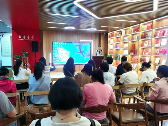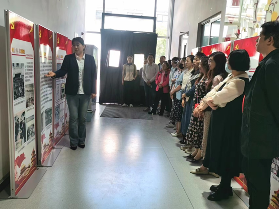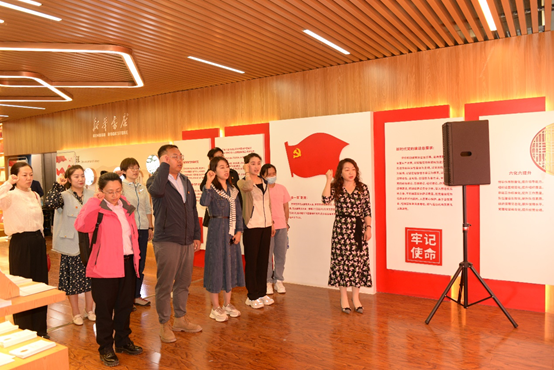 新华书店讲解员为党员们讲解宁夏新华书店党支部的发展历程。