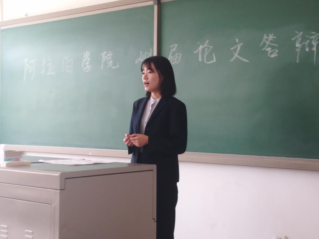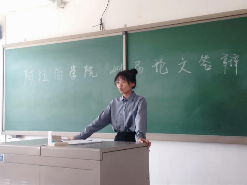 答辩中,答辩学生在十分钟内运用阿拉伯语对论文主题进行脱稿陈述,随后评委老师用阿拉伯语就论文内容、课题中关键问题等进行提问。在学生回答结束,评委老师就论文中的闪光点和不足进行点评,提出论文的修改意见。最后,依据评分标准,答辩委员会以集体讨论的形式评定论文成绩,填写每位学生毕业论文评语。