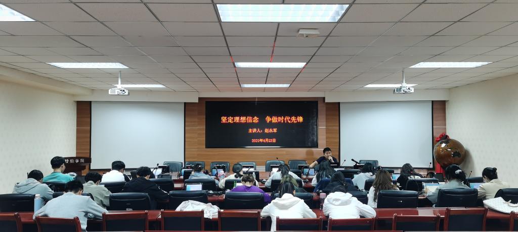 赵永军副书记从开展党史学习教育的时代背景和重大意义、在党史学习教育中进一步坚定理想信念、什么是共产党员的理想信念、如何争做时代坚先锋四个方面进行了阐述。他结合自党史学习教育以来个人学习心得体会,指出当代青年大学生党员要坚定理想信念,牢记初心使命,通过党史学习教育,努力使自己成为践行党章、勤奋学习、志愿服务、勇于创新、敢于担当的模范。