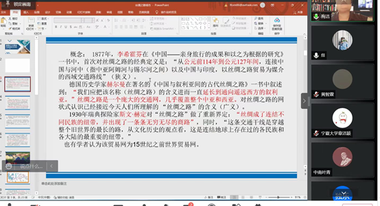 车效梅教授在讲座之初首先向大家介绍了丝绸之路的概念。之后从跨国史、跨国史研究与丝路城市史内容、跨国史与建构丝路城市史研究的新路径和新方法、跨国史与丝路城市史研究与书写四个方面进行了详细介绍。