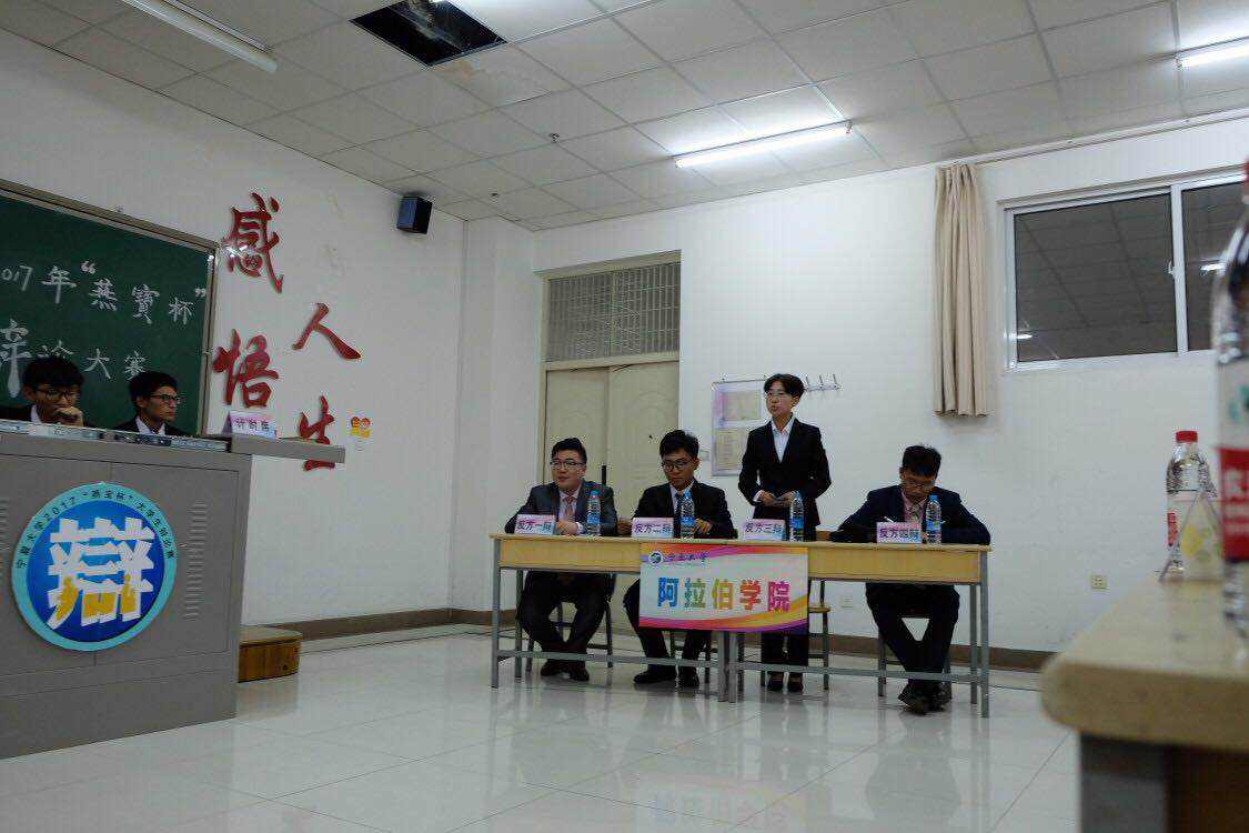 燕宝杯“思辨青春,感悟人生”辩论赛。研究生学院副院长周学忠、人文学院教授白建灵、新华学院副教授朱晓莉担任评委。