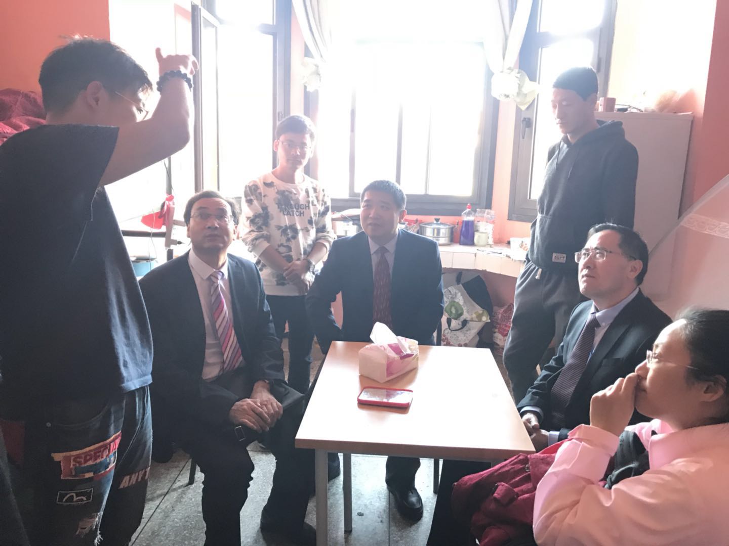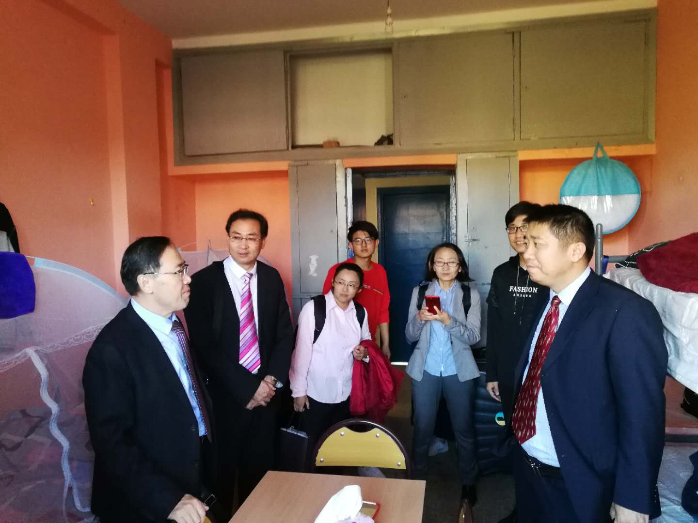 之后,谢应忠副校长一行到学生宿舍实地看望了学生们生活学习环境,就同学们提出的增加自习室的问题与校方进行了协调。