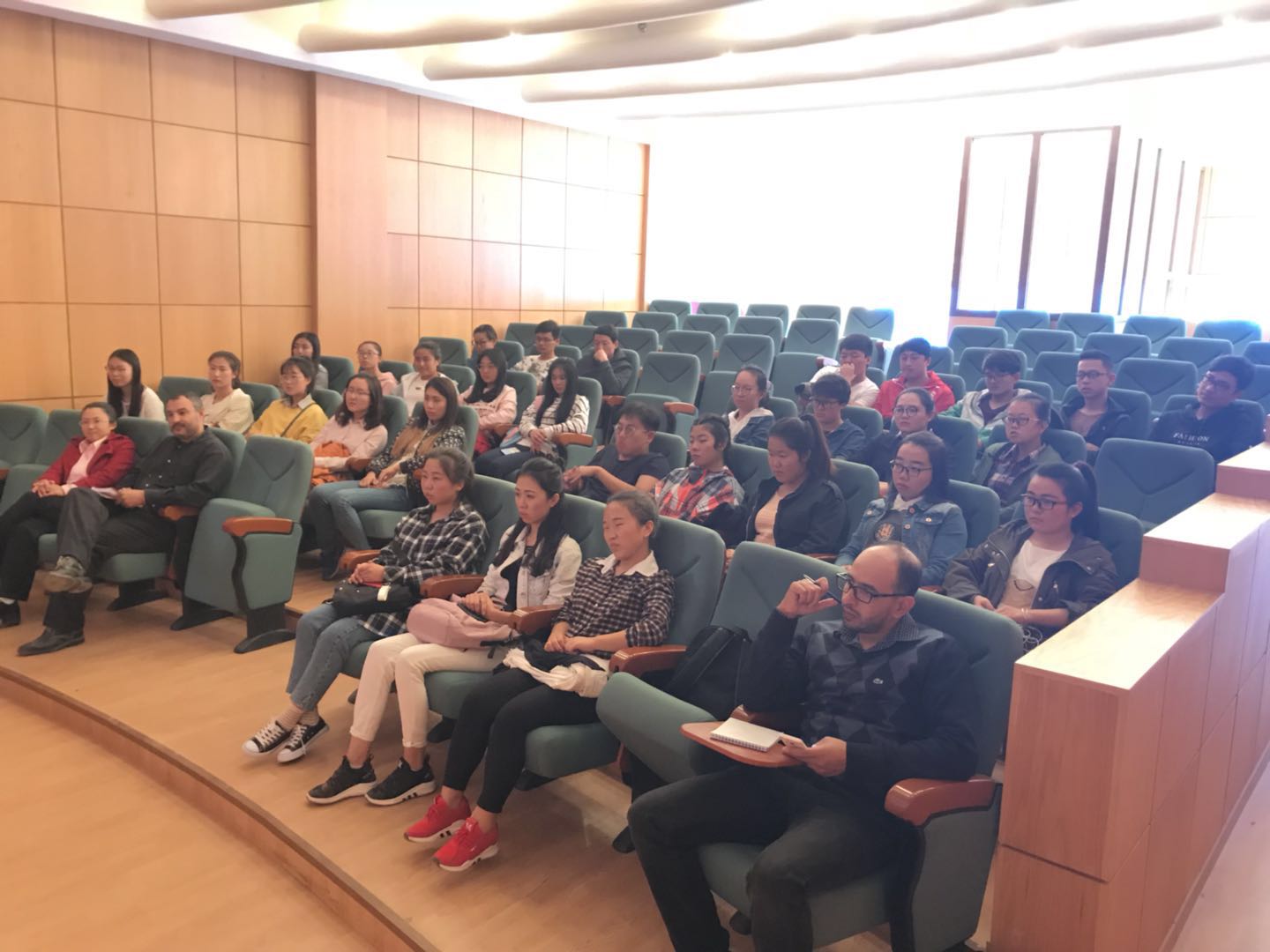 常务副院长金忠杰、党总支副书记赵永军、中国阿拉伯国家研究院王卓老师出席了会议。哈桑一世大学法赫里副校长、学生事务科艾敏老师陪同参加。