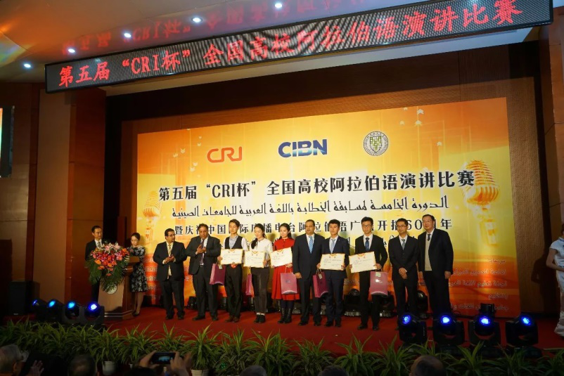 外交部原副部长杨福昌、中国国际广播电台副总编任谦、北京语言大学校长刘利以及阿曼、阿尔及利亚、巴勒斯坦、卡塔尔、突尼斯、也门、约旦驻华大使等中外嘉宾出席颁奖仪式并为获奖选手颁奖。