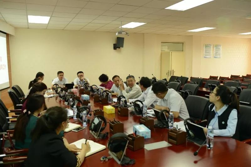 随后,关海庭教授到学院学术报告厅进行了深度访谈。学院领导班子成员、教研室主任、学生工作办公室、教学科研办公室、中国阿拉伯国家研究院办公室成员共12人参加了会议。张前进书记对关海庭教授的到来表示了热烈欢迎和衷心感谢,常务副院长金忠杰从学院基本情况、办学定位和人才培养目标、师资队伍、培养过程、学生发展等方面,紧紧围绕评估中的“五个度”及学院未来发展方向进行了汇报。张前进书记对学院党总支开展的思想引领、服务地方、智库建设等方面工作进行了补充发言。与会人员就海外访学学生管理、学风建设、科研情况、师资队伍建设情况等方面进行了汇报与深度交流。