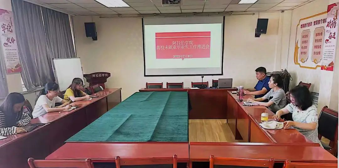 (中国阿拉伯国家研究院)在文萃校区知行楼8楼814会议室召开2022届离校未就业毕业生就业形势分析与工作推进会。学院党政领导、工会主席、系主任、2022届毕业生精准帮扶联系教师参加会议。会议由党总支副书记赵永军主持。