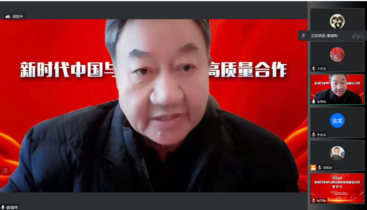 党委书记李星、中联部原副部长于洪君、商务部原副部长姜增伟、国务院参事室特约研究员邱进、前中东问题特使吴思科先后致辞。