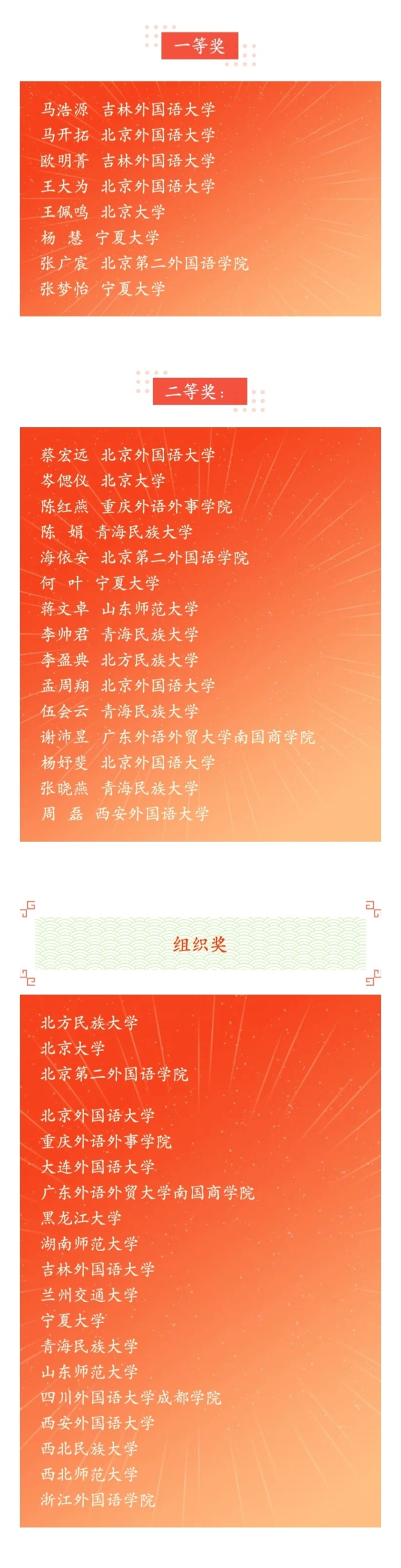 付志明在颁奖致辞中回顾了阿拉伯文书法大赛的办赛历程,高度评价了参赛同学优美的阿拉伯语文书法作品,并宣读了获奖名单。共有来自全国19所高校的54名同学,以及20名社会参赛者获奖。其中,喵趣漫画