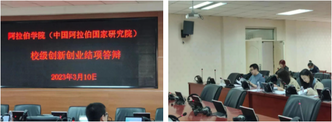 (中国阿拉伯国家研究院)在文萃校区知行楼八楼报告厅举行了校级大学生创新创业项目结题答辩。马成文、王艳、何祯三位老师担任答辩会评委。在签到,确认信息后,各项目组主持人按照顺序依次进行答辩。此次参加结题答辩项目10个,分为答辩自述和评委提问两个环节。