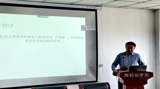 孙柳博士、冯杰文教授、金忠杰教授分别对子课题一“阿拉伯文明西传的地理路线研究”、子项目二“阿拉伯文明西传路径的历史演进”、子项目三“阿拉伯文明西传的内容和媒介研究”进行了详细汇报。