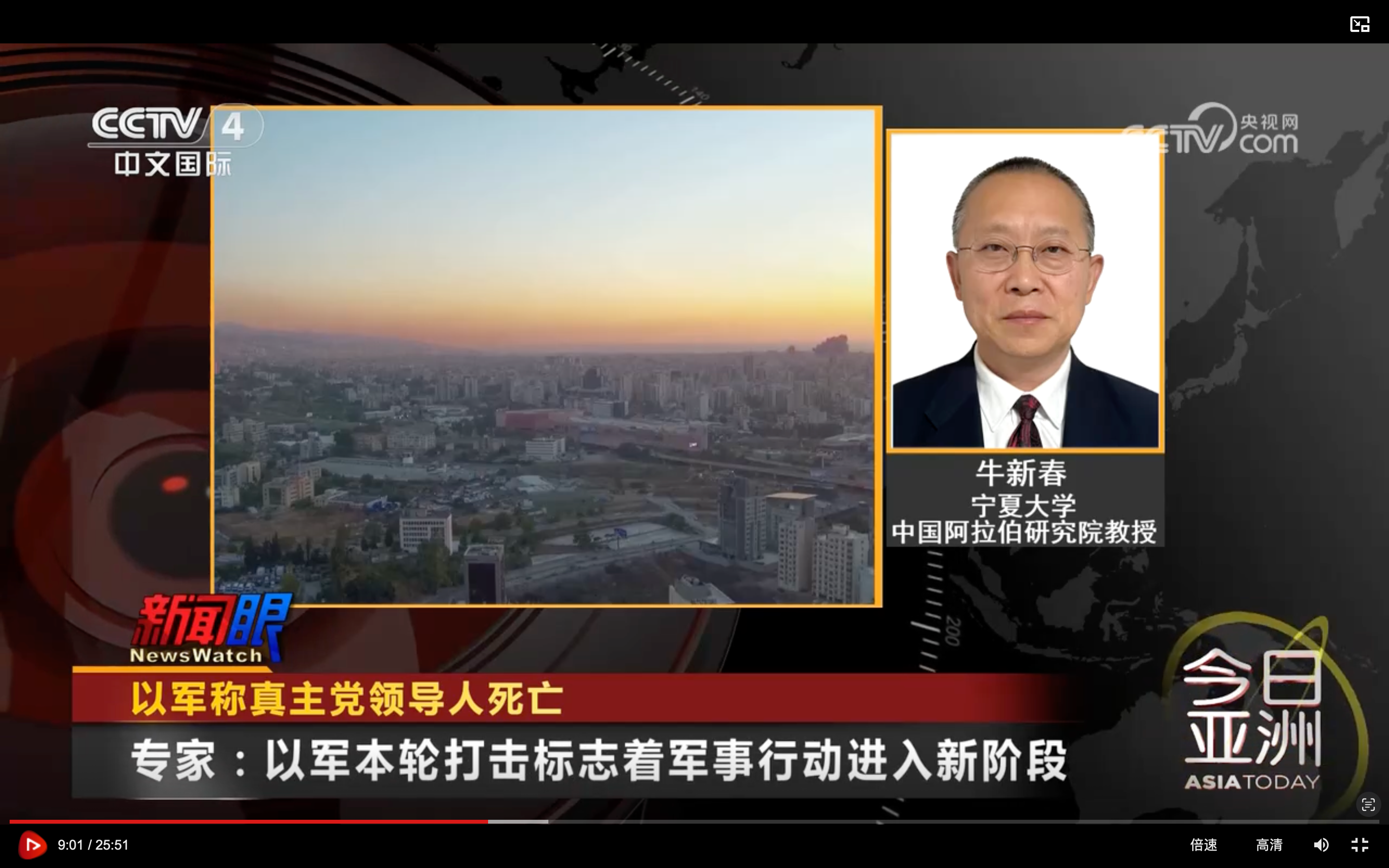 四、2024年9月28日接受CCTV-4频道《今日亚洲》节目连线采访