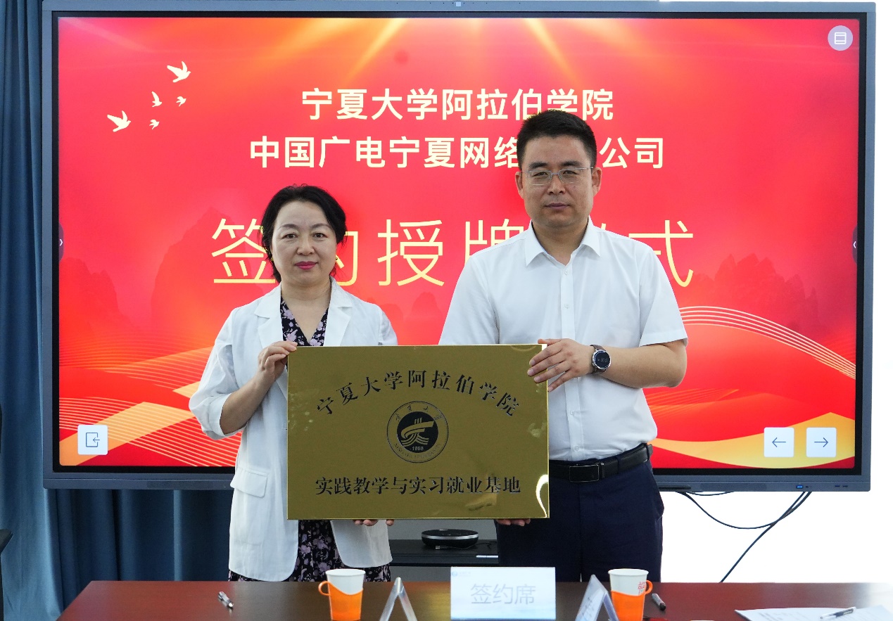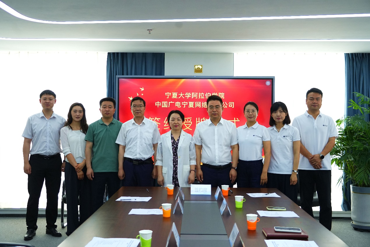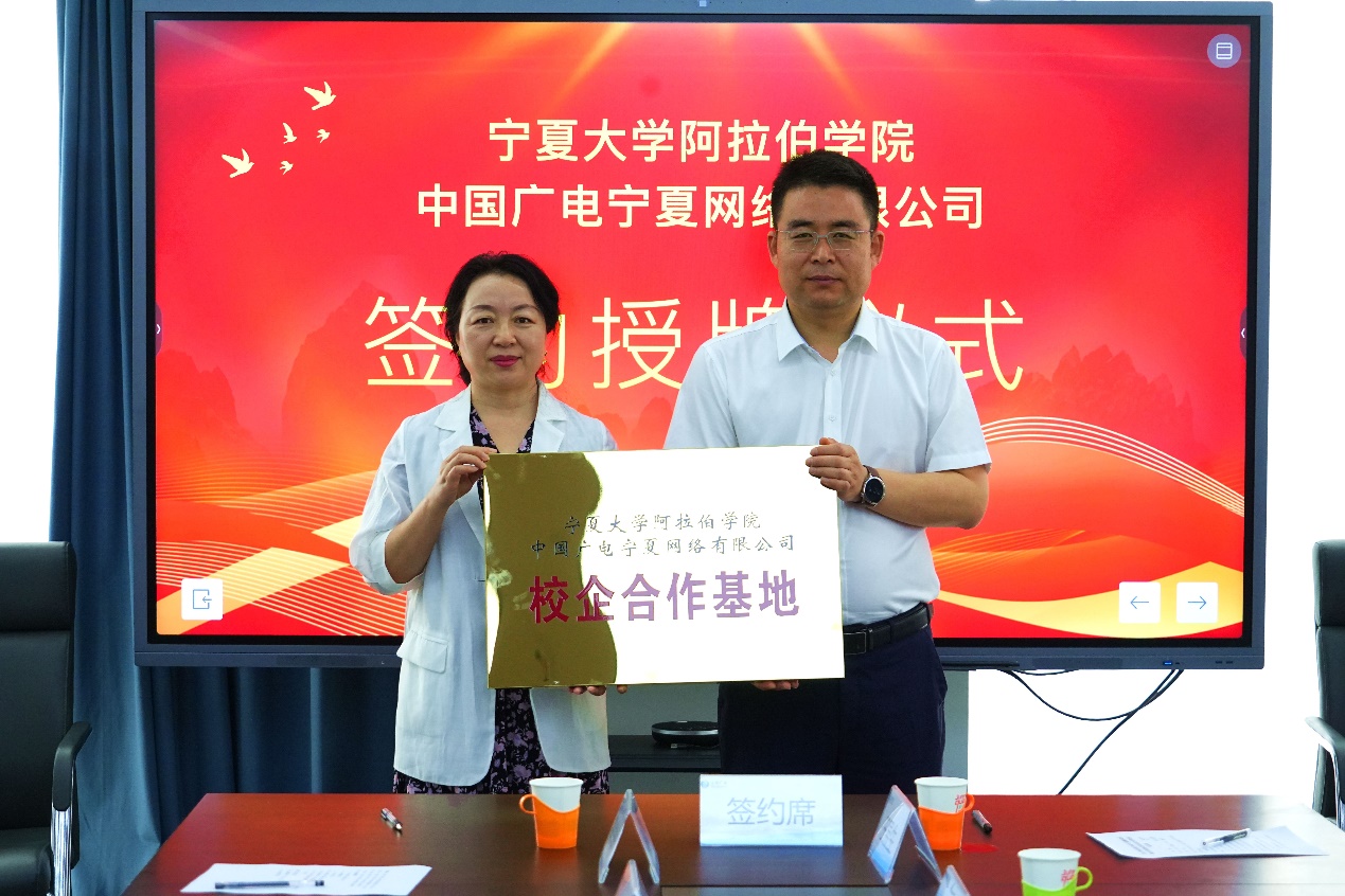 与中国广电宁夏网络有限公司举行校企合作签约暨实习就业基地揭牌仪式。喵趣漫画