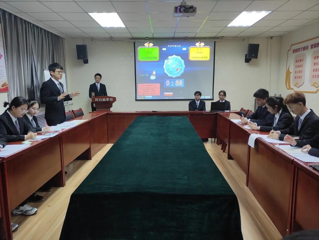团委学生会成员李玄召、李宇晴、李诺亚、杨丽娜,往届优秀辩手黄志嘉、刘一洁担任评委,2020级学生杜稚聪担任主持人。