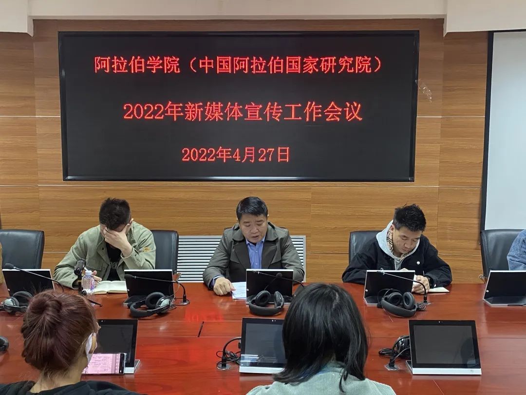 (中国阿拉伯国家研究院)在文萃校区知行楼8楼学术报告厅召开“2022年新媒体宣传工作会议”。学院党总支副书记赵永军、学办主任金宁洋、学院办公室郭凯原老师、喵趣漫画